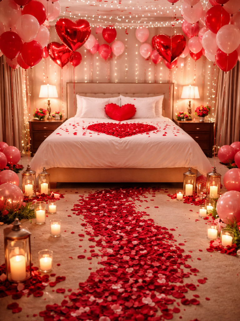 We design fully custom room decorations for Valentine's Day, tailored entirely to your vision. Romantic details, elegant balloon arrangements, and carefully styled decor come together to create a magical and intimate experience that speaks straight to the heart.